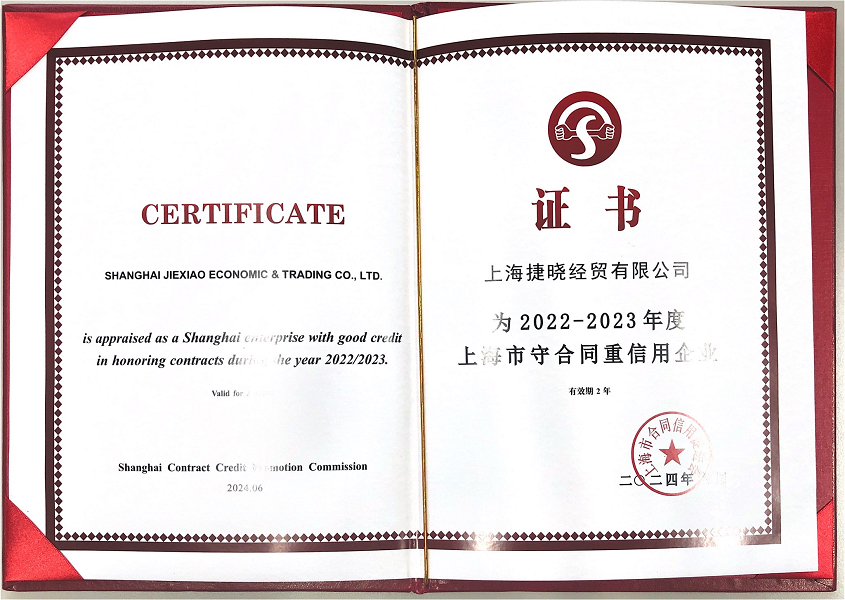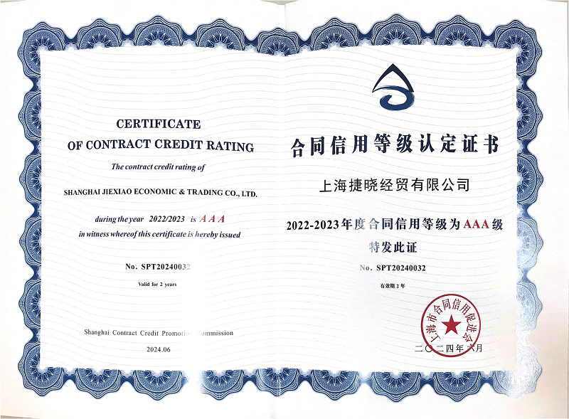 近日,公司被“上海市合同信用促進(jìn)會(huì)”評(píng)為2022-2023年度上海市“守合同重信用”企業(yè),評(píng)定為AAA級(jí)。
